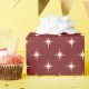 Mid century modern wrapping paper features atomic star pattern in retro marroon Burgundy. The cute starburst is a cool midcentury classic.