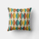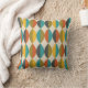 A retro mid-century modern pattern design adorns this designer pillow/cushion in a typical colour palette from the era turquoise ,olive green mustard, grey and burnt orange. This fabulous pillow/cushion will make a very stylish addition to any home interior be it modern, retro or minimalist. © Julie McIver