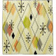 This retro atomic era abstract art design has diamonds and sputnik starbursts in chartreuse and orange.