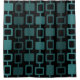 A simple minimalist pattern inspired by 1950s atomic era abstract art, with columns of rounded squares in dark teal, with a black background.