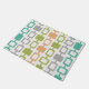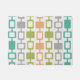 A simple minimalist pattern inspired by 1950s atomic era abstract art, with columns of rounded squares in orange, chartreuse green, turquoise, and grey.