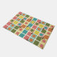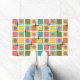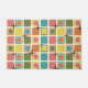 A retro 1950s art pattern with geometric rounded squares and atomic style stars. Multicolored in bright, vivid pink, orange, green, yellow, and blue.