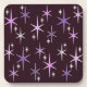 This design was inspired by vintage mid century modern art. It has a pattern of stars in shades of pink and purple on a dark background.