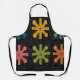 This apron has a Mid-century modern design of starbursts in retro colours on a field of black.