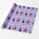 Mid Century Modern Stars and Cats Pattern Lavender Wrapping Paper