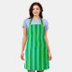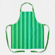 Apron in a Mid-Century Modern striped pattern in shades of light and deep lime green, and light turquoise / aqua, accented with dark emerald green