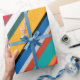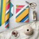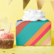 This wrapping paper has a design of diagonal stripes in Mid-Century Modern colors.