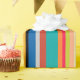 This wrapping paper has a design of vertical stripes in Mid-Century Modern colours.
