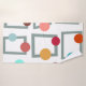 This towel set has a Mid-century modern design of grey trapezoids with colourful circles on them.