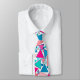 Tie in a Mid-Century Modern geometric mosaic of outlined triangles in shades of turquoise / peacock, coral, peach and fuchsia on a white background