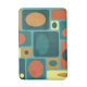 This retro inspired abstract pattern has a turquoise background and various sizes of rectangles in yellow and orange.