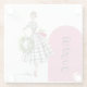 Decorate your space with this Modern Retro Vintage Lady holiday coaster. The perfect coaster to add that unique and personal charm to your space. This coaster features a classy, vintage lady with mid century modern elements. Pink, white, gray, black and green elements give this ornament it's classy modern feel. In addition, red and green Christmas tones add a vintage holiday touch. With customizable text, you have the option to add your own wording and text color. Decorate your space or give as a unique and charming gift, perfect for friends, family or coworkers.