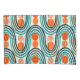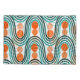 This pillow case has a mid-century modern design of teal waves and orange circles.