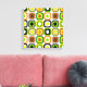 Mid-Century Modern Wrapped Canvas, colourful funky abstract squares and circles in shades of green gold, brown and black. A perfect addition to your mid century style.