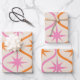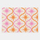 Mid Century Orange Pink Starbursts on Ogee Pattern Wrapping Paper Sheet