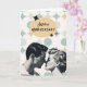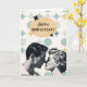 A man and woman gaze at each other affectionately in a retro style design. Geometric patterns and a bold message add a nostalgic touch. The cards says "Happy Anniversary" on the front.