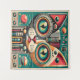 Mid Century Retro Futuristic Circuit Cat Tapestry