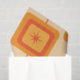 This is elegant retro mid century atomic starbursts on abstract squares in yellow, orange and red