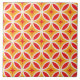 This is classic mid century retro red starbursts on geometric circles over orange background. It's great looking ceramic tile for your home