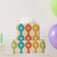This is elegant mid century modern atomic starbursts pattern placed on ogee ovals in red, green, mustard and teal. It's great looking party supply.