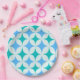 Mid Century Retro Starbursts Pattern Teal Blue Paper Plate