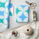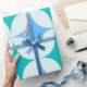 Mid Century Retro Starbursts Pattern Teal Blue Wrapping Paper