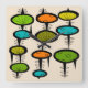 Mid-Century Modern space age design wall clock, geometric shapes in colours of teal, orange, lime green.