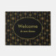 This doormat features a graphic pattern inspired by Mid Century Modern design with thin stripes and starburst motifs made up of circles in lively retro hues. All elements of this design may be customized with your choice of colour.
