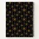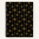 A graphic pattern inspired by Mid Century Modern design with thin stripes and starburst motifs made up of circles in lively retro hues embellishes both sides of this notebook. All elements of this design on either side may be customized with your choice of colour.