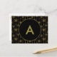 This postcard features a graphic pattern inspired by Mid Century Modern design with thin stripes and starburst motifs made up of circles in lively retro hues along with coordinating monogram on front and custom save the date text on the back. All elements of this design may be customized with your choice of colour..