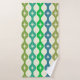 Mid Century Starbursts on Green Blue Ogee Pattern Bath Towel Set