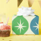 Mid Century Starbursts on Green Blue Ogee Pattern Wrapping Paper