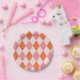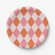 Mid Century Starbursts on Orange Pink Diamonds Paper Plate