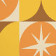 This is elegant mid century atomic starbursts pattern on orange circles and yellow half circles on squares. It's great looking decorative wallpaper for your home