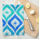 Bring some retro flair to your kitchen with this Mid-Century Retro Starbursts on Blue Turqouise, and Teal Ogee Pattern kitchen towel! Featuring iconic starburst motifs , this towel blends vintage mod aesthetics with bold, geometric shapes