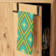 This is elegant yellow mid century atomic starbursts on harlequin diamonds pattern in teal, red and green. It's great looking kitchen towel for anyone who love mid mod designs