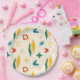 Mid mod atomic pattern with retro colour palette paper plate.