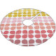 This stylish holiday Christmas tree skirt features a retro mid mod shapes pattern in a sunset of warm colours including yellow, coral, and red. Great gift idea.