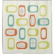 A simple minimalist 1950s abstract art pattern with rounded rectangles and sputnik starbursts in chartreuse, turquoise and orange.