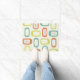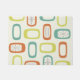 A simple minimalist 1950s abstract art pattern with rounded rectangles and sputnik starbursts in chartreuse, turquoise and orange.