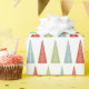 Wrap gifts up in style with this gift wrap. This wrapping paper features an all over pattern on sleek, modern style illustrations of Christmas trees in light green, light blue and red with white accents against a white background.