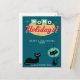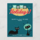 A fun retro design featuring midcentury modern elements with a "Ho Ho Holidays" billboard and two black cats on a dark teal background. Personalize this Christmas postcard with your own holiday greeting for your family and friends. You can change the color of the background and the cats to suit your own style.