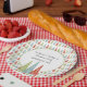 Create some personalized paper plates that are perfect for Christmas and holiday parties. These party supplies feature illustrations of Christmas trees with a sleek modern style in light green, light blue and red against a white background. The paper plates are ready to be personalized with your own text in a combination of script and print lettering.
