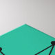 A 1950s retro styled mid century modern design with sputnik starbursts against a turquoise background with circle shapes.