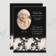 The midnight black background features an oval photo window and a thick "lace" border with tiny polka dots. A beautiful remembrance for a loved one.