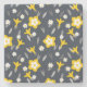Retro flowers and leaves in white, grey, & ochre yellow over a midnight blue background. Background colour can be changed.