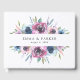 Elegant floral wedding guest book featuring your names, wedding date, and city/state on the front framed by purple, blue & mauve watercolor flowers with green leaves. The spine features space to add your name & wedding date. Designed to coordinate with our Midnight Blooms wedding collection.