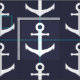 A pattern of white boat anchors is on a midnight blue background.