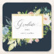 Midnight Blue Blush Floral Graduation Square Paper Coaster