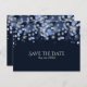 Midnight Blue Bokeh Lights Wedding Save the Date Announcement Postcard